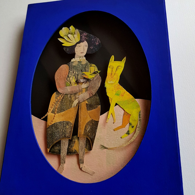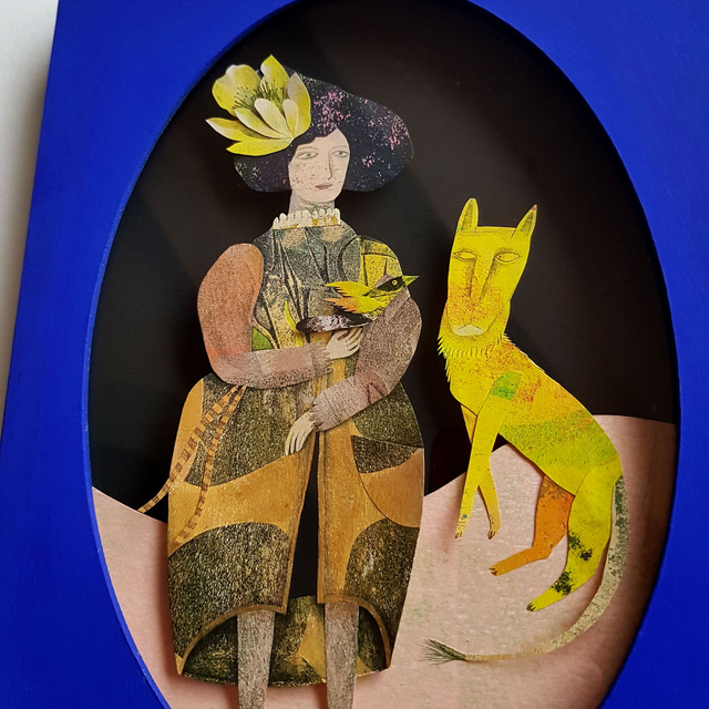 Diorama Femme avec panthère et oiseau