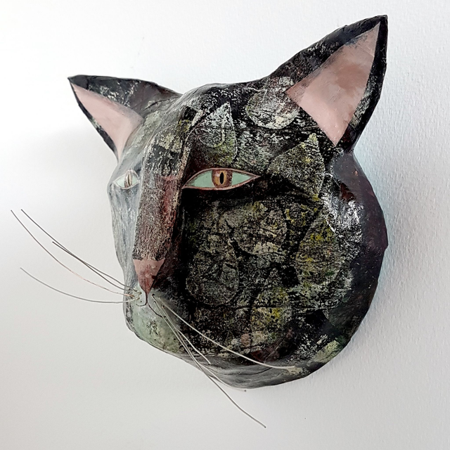 Tête de chat en papier mâché